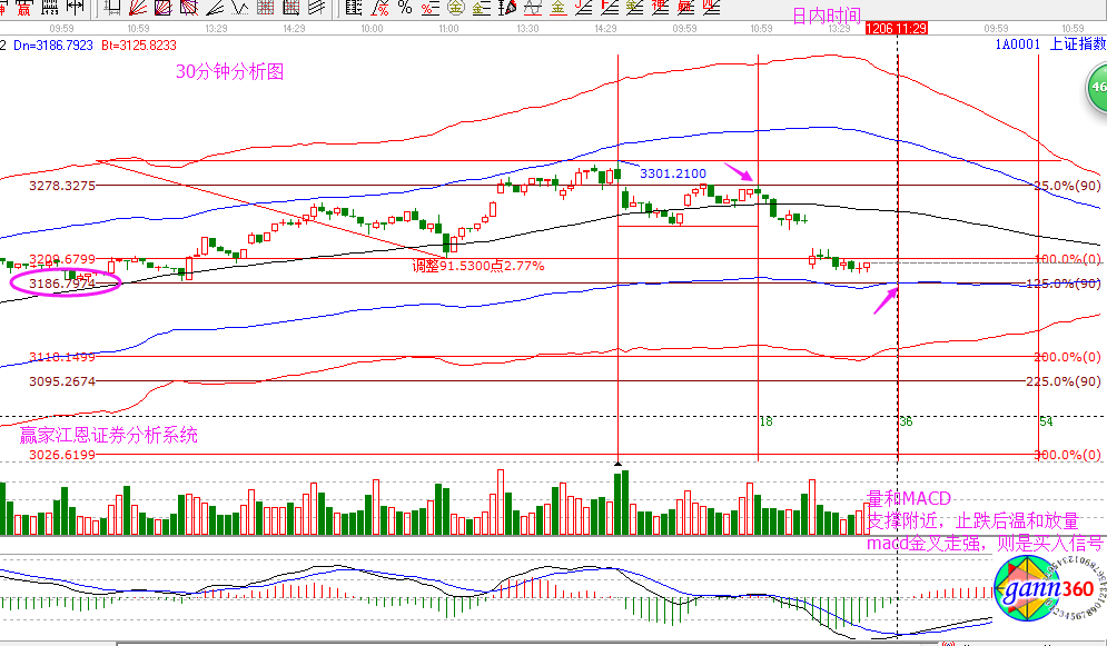 當(dāng)下大盤預(yù)測分析:日線今日為時間變盤點(diǎn),28日大盤上沖3288收十字星,我們提到高位十字星 紅色線 時間點(diǎn)——賣錯也要賣;29日上沖3300,再次明確強(qiáng)調(diào)3300的階段壓力——賣錯還得賣,之后幾日快速下行,來到了3200點(diǎn),今日6號的窗口關(guān)注是否為短線止跌轉(zhuǎn)勢點(diǎn)??臻g上,日線百分比的位置顯示3182,關(guān)注此位置是否能走出震蕩給出短線操作機(jī)會。短周期今天每個周期都分享圖形:5分鐘,昨日開盤直接開到了紅線附近,目前底背離構(gòu)建中;15分鐘調(diào)整到藍(lán)色下軌線附近,同時MACD金叉走強(qiáng) 量能吻合放出,則15分鐘反彈也是一觸即發(fā);30分鐘藍(lán)色下軌線 百分比的支撐顯示3186;60分鐘的時間上今日關(guān)注上午11點(diǎn)-11點(diǎn)半,及下午2點(diǎn)。跌多的時候,我們是在找買點(diǎn)。