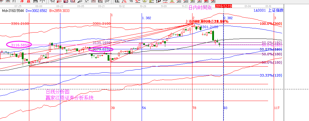 今日點位及時間: 大盤今日支撐3095-80,壓力3138, 日內(nèi)時間窗口關(guān)注上午10點半到11點半,日線級別下個時間窗口在12月19日。