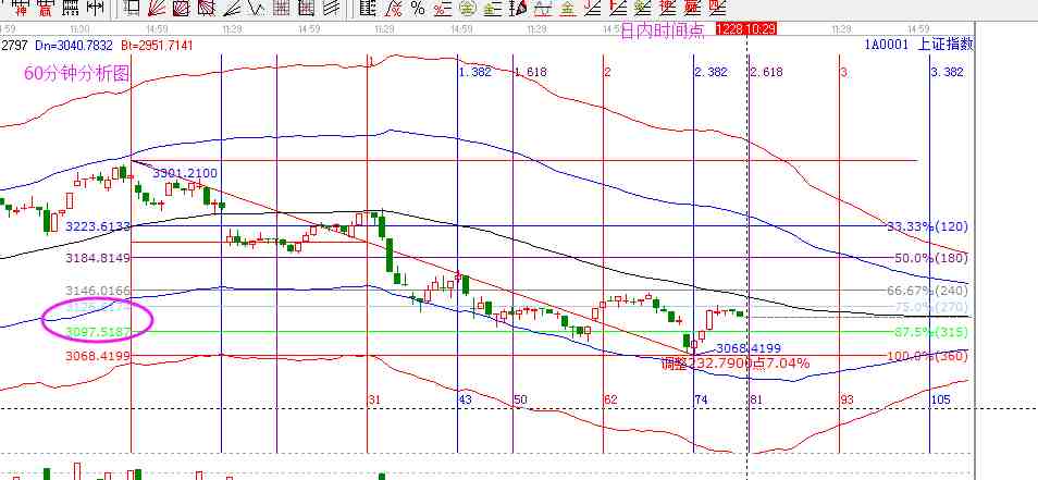 當下大盤預測分析:日線大盤前日下探上行趨勢線支撐后拉起,昨日震蕩收十字星,繼續(xù)維持反彈生命線的趨勢。日內各周期昨日走勢不強,參考60分鐘周期分析圖。當前受壓于百分比75%——3127點的壓力,下方支撐看低一線到87.5%——3097,震蕩鞏固后,60分鐘將繼續(xù)向生命線看齊。日內時間點關注上午10點半-11點半。