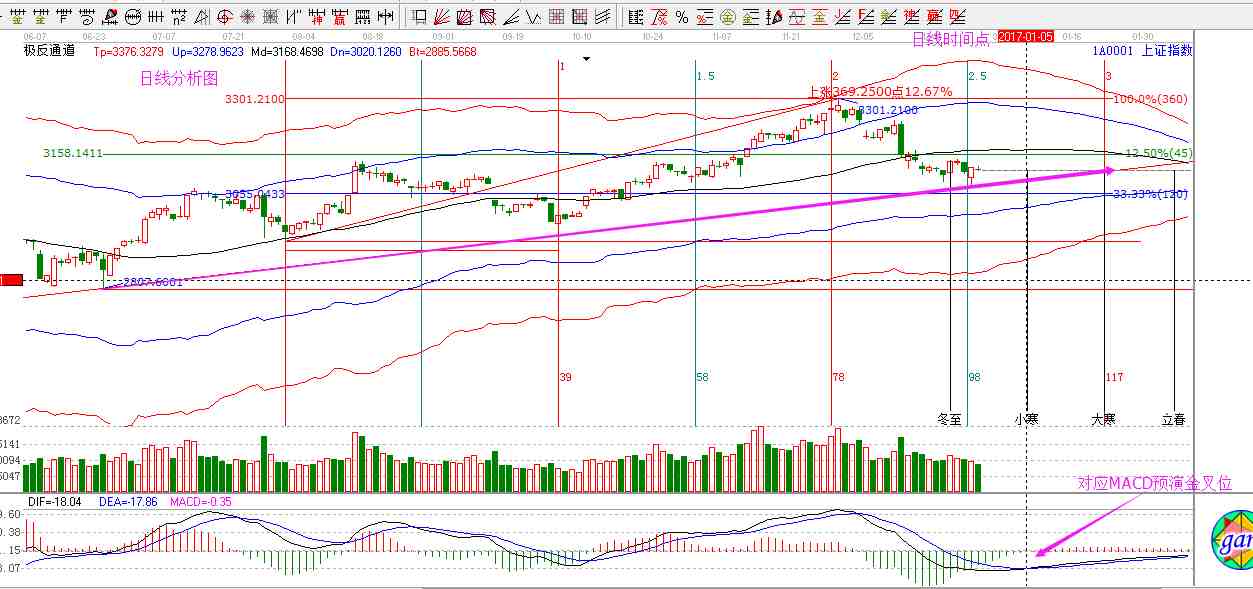 今日點位及時間: 大盤今日支撐3097,壓力3143, 日內時間窗口關注上午10點30分,日線級別下個時間窗口關注1月5日。
