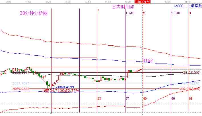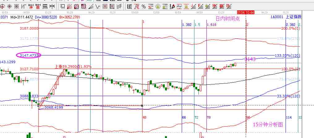 當下大盤預測分析:日線回踩趨勢線支撐3069后,如約展開反彈,繼續(xù)向生命線3165一線看齊。能否強勢突破3165,決定著后續(xù)反彈的力度和空間。趨勢在生命線下,行情仍照反彈對待,3069附近補倉的,3165一線仍以逢高兌現(xiàn)短線或差價利潤為主??慈諆?nèi)各周期分析圖,15分鐘藍色線附近&百分比3分位壓力——3147;30分鐘藍線位置——3162;60分鐘底背結構給出了確定性的抄底信號,當前站回60分鐘生命線,上漲趨勢進一步明確。60分生命線3116點轉化為當下支撐點,反彈空間50% 藍線3185;日線生命線——3165.則,綜述,當前市場處于反彈結構中,反彈空間3147-3165-3185。其中重點關注3165位置。