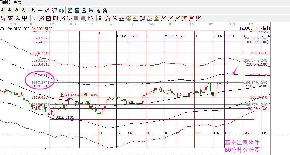 摘要: 當(dāng)下大盤預(yù)測分析:先看日線分析圖,生命線上繼續(xù)朝藍(lán)線運(yùn)行中,強(qiáng)勢區(qū)個(gè)股機(jī)會多多,短期3202是百分比線,藍(lán)線3235附近,具體結(jié)合日內(nèi)短周期的走勢,來判定是震蕩至藍(lán)線,還是強(qiáng)勢直達(dá)藍(lán)線,順勢去做即可。日內(nèi)分析圖,先看15分鐘的,該周期藍(lán)線價(jià)位在3208附近,生命線支撐3168,時(shí)間指向上午11點(diǎn)。再看30分鐘和60分鐘的目前看都有上行空間