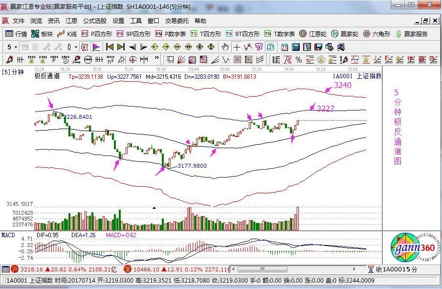 昨日分析及走勢:3190為60分鐘極反通道生命線附近,前天跌穿后截止收盤收回,昨日繼續(xù)在此支撐處,權(quán)重護盤,市場再次上沖。日內(nèi)給出的壓力點是3216點,實則最高沖到了3219點,誤差3個點。在昨日操作策略中也提到震蕩回落,仍可把握個股操作。但,不要因指數(shù)短暫的繁榮,而認為風險已經(jīng)過去,3225-3238的壓力仍在?;仡櫹氯ツ?月23日到4月初大盤藍線下的震蕩結(jié)構(gòu),以及4月-5月的快速回落,你會更能理解接近壓力區(qū),即便仍有操作機會,但也有保持警惕投資的意義。