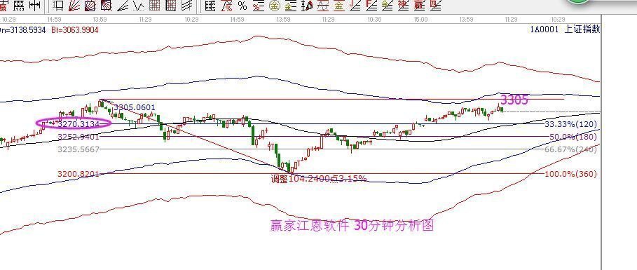 當(dāng)下大盤預(yù)測分析:對照日線分析圖,3300一線震蕩橫盤,藍(lán)線空間震蕩在3338附近,3305的高點(diǎn)為短期壓制,壓力區(qū)附近橫盤震蕩,有機(jī)會放量繼續(xù)上攻打開新空間,更有可能回落洗盤后蓄勢再攻。目前A股不是震蕩市,壓力位下橫盤我們還是保守操作更穩(wěn)妥。日內(nèi)周期:15分鐘通道震蕩上行,結(jié)合百分比支撐顯示3271,壓力3303,日內(nèi)時間指向上午11點(diǎn);30分鐘藍(lán)線壓力區(qū)橫盤整理,生命線支撐顯示3270附近;60分鐘生命線上震蕩上行,生命線3263附近。則綜述:短期支撐參考3270,壓力3305,日內(nèi)時間關(guān)注上午11點(diǎn)。