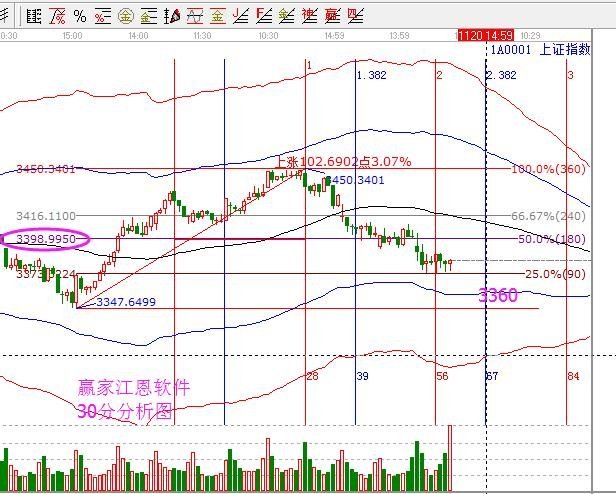 今日點位及時間: 大盤今日支撐3360-56,壓力3398,日內(nèi)時間關(guān)注下午3點,日線級別下個時間窗口關(guān)注11月21日、11月30日。