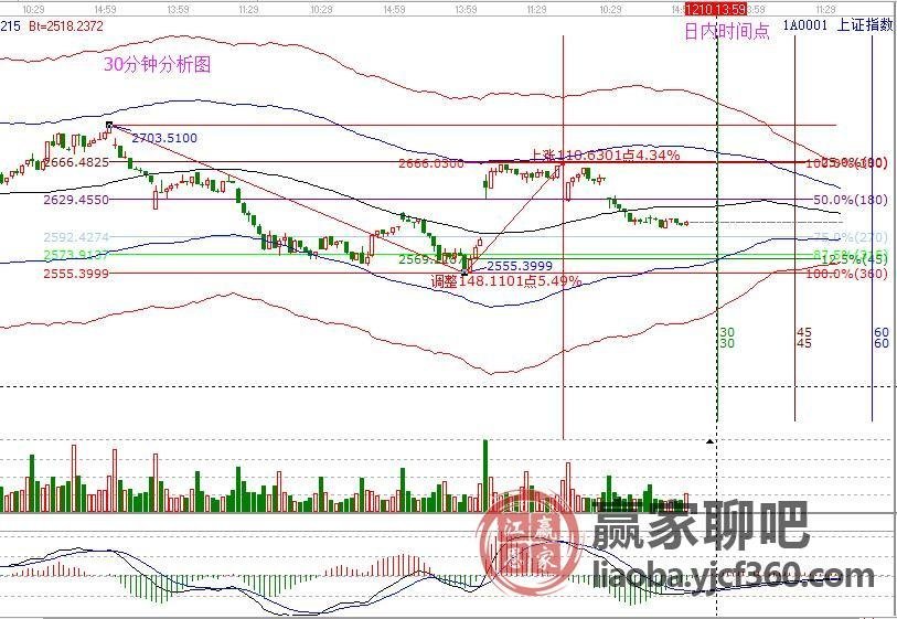 摘要: 今日點(diǎn)位及時(shí)間: 大盤今日支撐2570,壓力2620,日內(nèi)時(shí)間關(guān)注下午2點(diǎn),日線級(jí)別下個(gè)時(shí)間窗口關(guān)注12月17日。昨日分析及走勢(shì):對(duì)照大盤30分鐘分析圖,上周市場(chǎng)自上方藍(lán)線壓力2666一線受阻后快速回落。按照極反通道規(guī)則,藍(lán)線過(guò)不去回調(diào)空間看低到生命線,指數(shù)回落到生命線附近后繼續(xù)擊穿走弱,則按照規(guī)則繼續(xù)看低到下方的藍(lán)線2670附近。