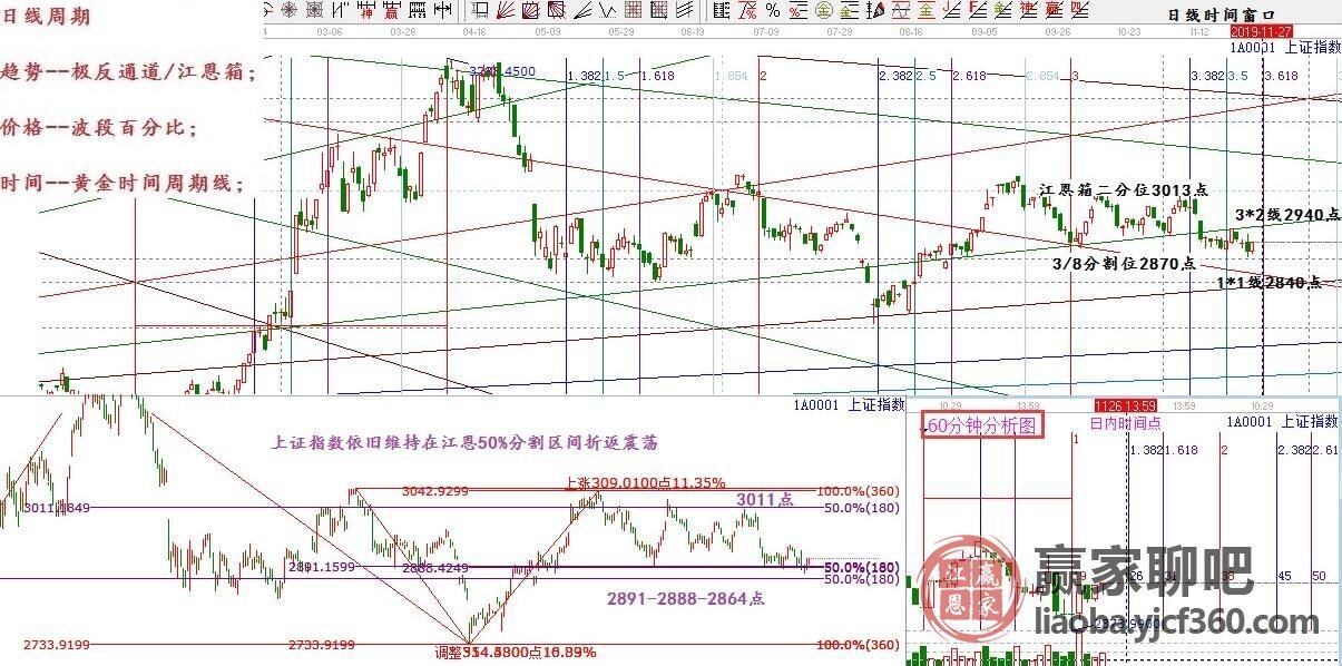 摘要: 趨勢:上證指數(shù)跌破生命線,趨勢弱勢。以今年指數(shù)低低點(diǎn)做江恩切線圖,與當(dāng)前江恩箱空間分割3/8(2870點(diǎn))形成共振,22號、25號低點(diǎn)觸及到共振位反抽,江恩箱3*2線2930點(diǎn)是近期一直強(qiáng)調(diào)的反壓位