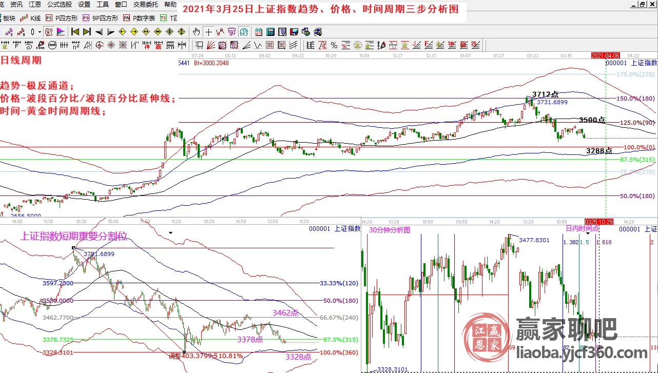 1、趨勢:指數破位生命線,趨勢弱勢。短線反彈結束后,連續(xù)兩天的殺跌使得投資者對行情更加悲觀,機會在絕望中誕生,在懷疑中成長。24號正式學員培訓課通過工具提前對下一次空間買點、時間買點做出測算,先人一步推算出行情大概率運行路徑,制定出相應的策略,方能運籌帷幄縱橫股市,目前學員從跟蹤解讀的板塊中篩選符合工具的機會。按20號預判,本周重點跟蹤輪中輪四方位置3340點,穩(wěn)健投資者未來幾天重點關注百分比270度及周線生命線的機會,日線級別下個時間窗口是4月1號。最后從時空循環(huán)預判,當前所運行的下跌周期,空間跌速不大,更多是以消耗時間為主。