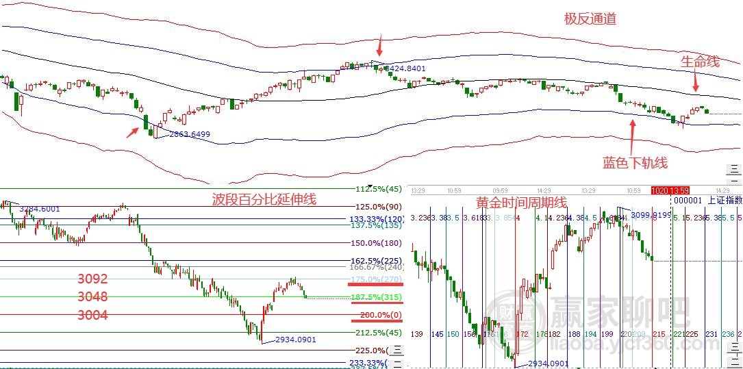 1、趨勢(shì):滬指10月19日低開低走未能繼續(xù)走強(qiáng),贏家時(shí)空工具顯示目前波段處于下跌趨勢(shì)中,繼續(xù)以看空為主。指數(shù)當(dāng)前在贏家極反通道生命線和藍(lán)色下軌線之間的弱勢(shì)通道內(nèi)運(yùn)行,弱勢(shì)區(qū)域內(nèi)運(yùn)行,所有上攻皆以短線反彈來(lái)應(yīng)對(duì),上方重要壓力為生命線3166點(diǎn),下方重要支撐為藍(lán)色下軌線2968點(diǎn),等突破生命線轉(zhuǎn)強(qiáng)后再積極操作。
