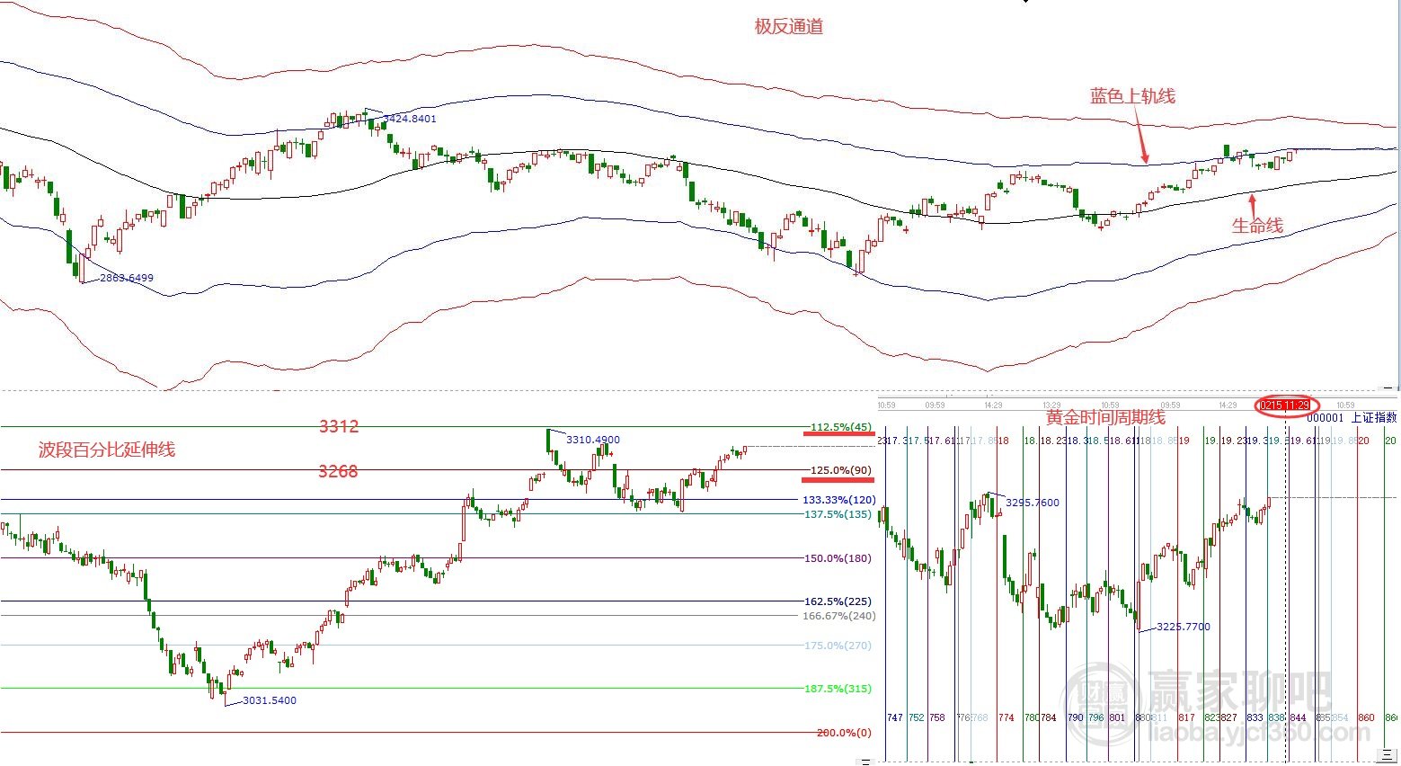 摘要: 贏家江恩三步分析法2月15日大盤解讀:1、趨勢:滬指當前處于極反通道生命線上強勢區(qū)域,近期圍繞藍色上軌線震蕩并到達此線壓力位,重點關(guān)注指數(shù)與此線的關(guān)系,如突破藍色上軌線3295點,可以繼續(xù)看高至紅色外軌線3392點;如不能突破3295點,短