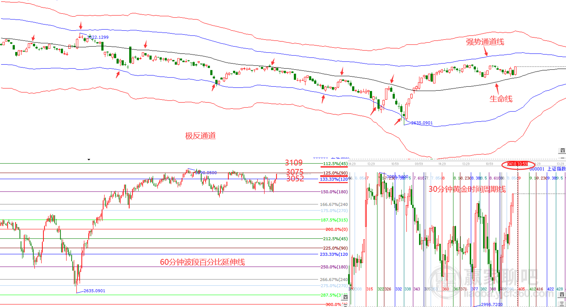 摘要: 贏家江恩三步分析法4月18日大盤解讀: 1、趨勢(shì):近期指數(shù)一直保持在極反通道生命線和強(qiáng)勢(shì)通道線之間的強(qiáng)勢(shì)通道內(nèi)運(yùn)行,根據(jù)極反通道規(guī)則,生命線上強(qiáng)勢(shì)區(qū)域內(nèi)運(yùn)行,整體以看多為主。當(dāng)前在生命線2986.28點(diǎn)獲得支撐后再度展開上攻,上方壓力
