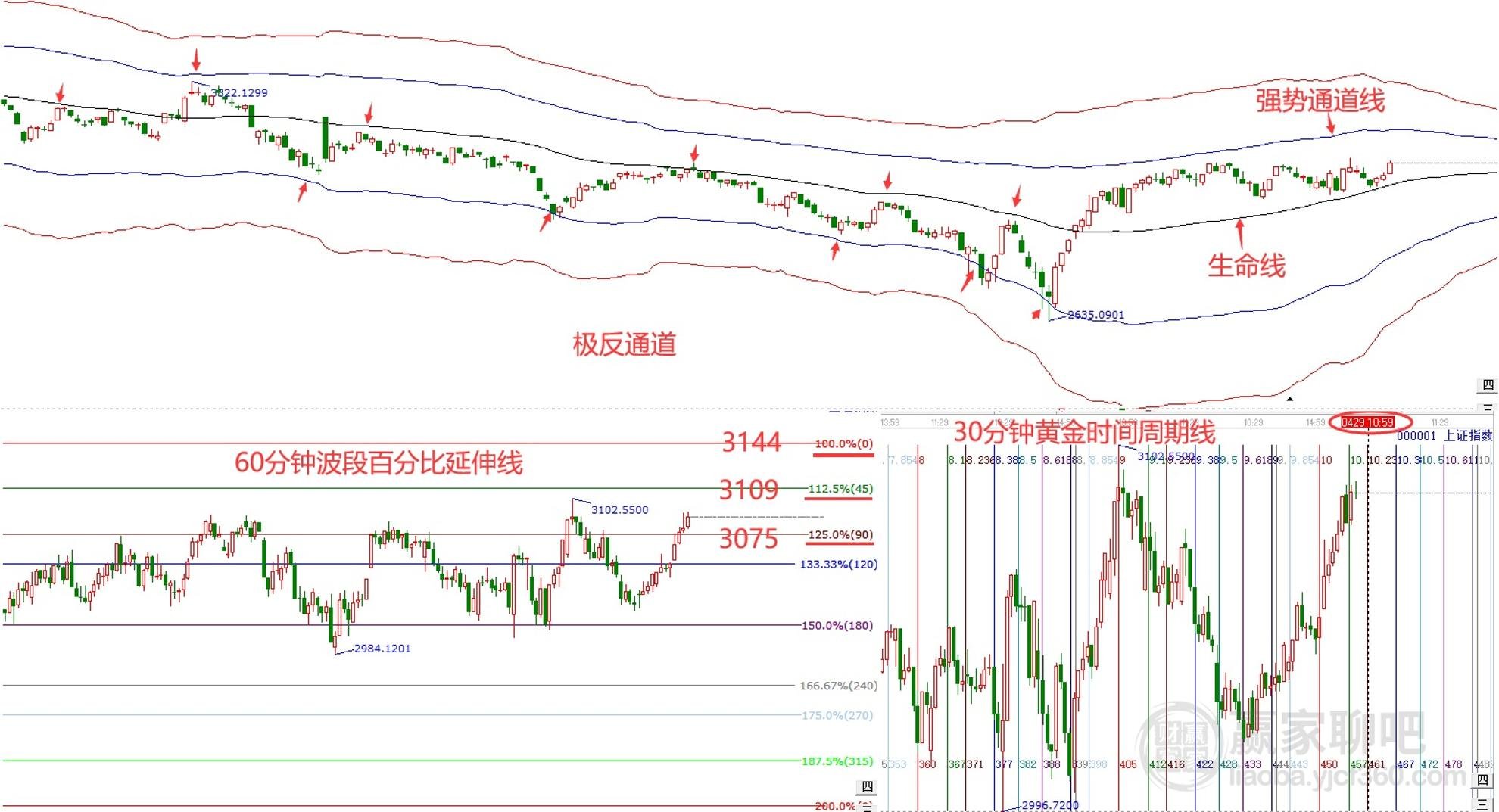 摘要: 贏家江恩三步分析法4月29日大盤解讀: 1、趨勢:指數(shù)自2月19日突破極反通道生命線由弱勢區(qū)域進入強勢區(qū)域以來,整體呈現(xiàn)震蕩上攻走勢,近日在生命線3025.82點獲得支撐后再度走強,上方壓力關(guān)注強勢通道線3183.32點?! ?、空間