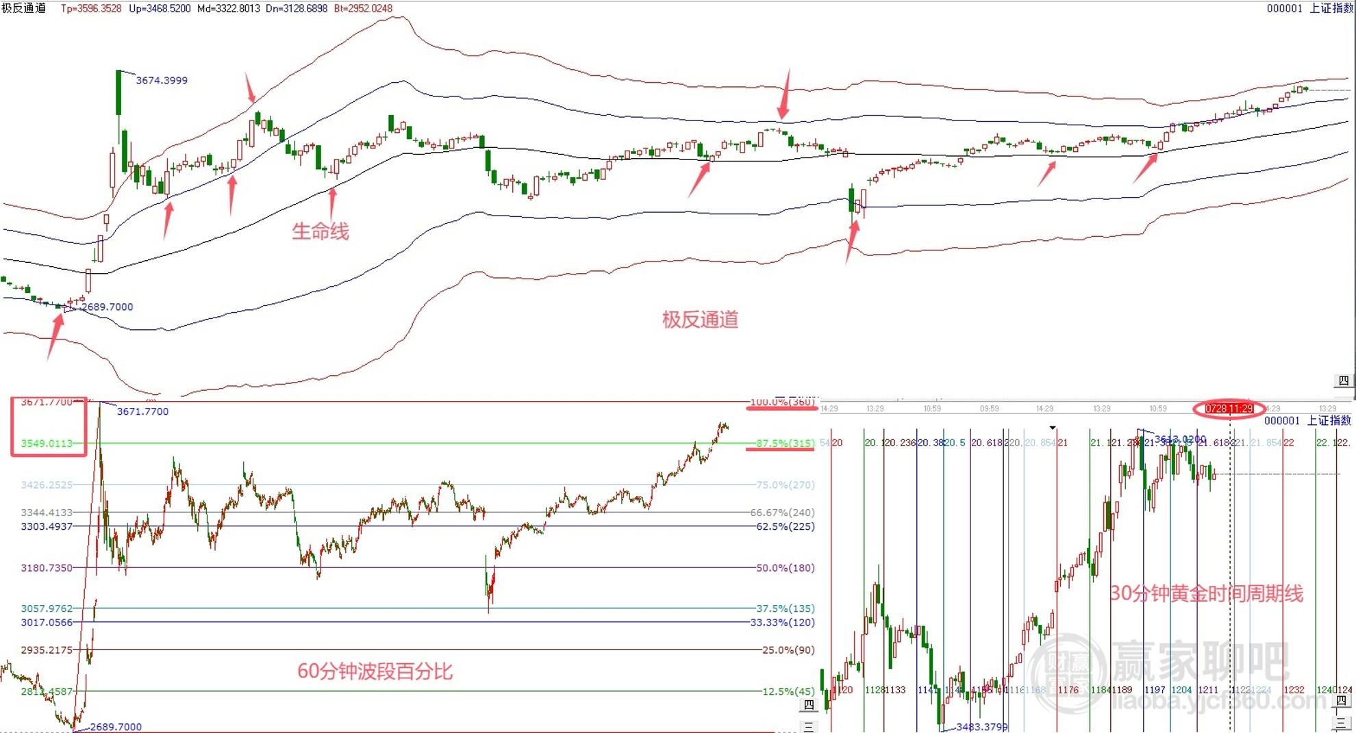 摘要: 贏家江恩三步分析法7月28日大盤解讀: 1、趨勢:指數(shù)當(dāng)前處于超強(qiáng)通道,目前依舊延續(xù)短期上漲趨勢,上方壓力關(guān)注強(qiáng)勢外軌線3630.36點(diǎn),生命線上強(qiáng)勢走,規(guī)則看多做多?! ?、空間:支撐3549點(diǎn),壓力3671點(diǎn)?! ?、時(shí)間:日內(nèi)時(shí)