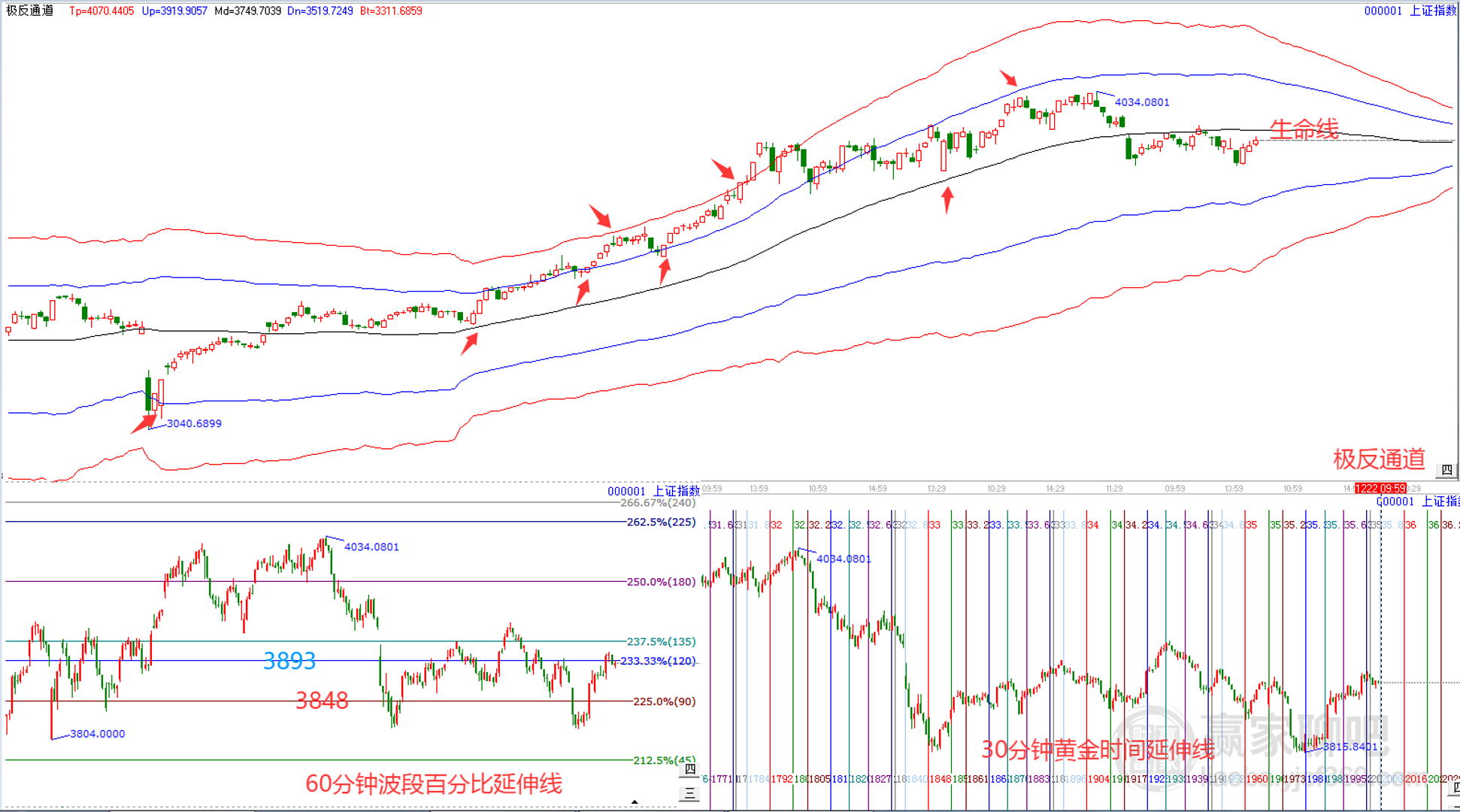 摘要: 贏家江恩三步分析法12月22日大盤解讀: 1、趨勢:指數(shù)自12月16日上漲至極反通道生命線下,按照贏家規(guī)則,生命線作為趨勢的強勢啟動點,生命線下整體視為看空。 2、空間:支撐3848點,壓力3893點。 3、時間:今日為日線時間窗