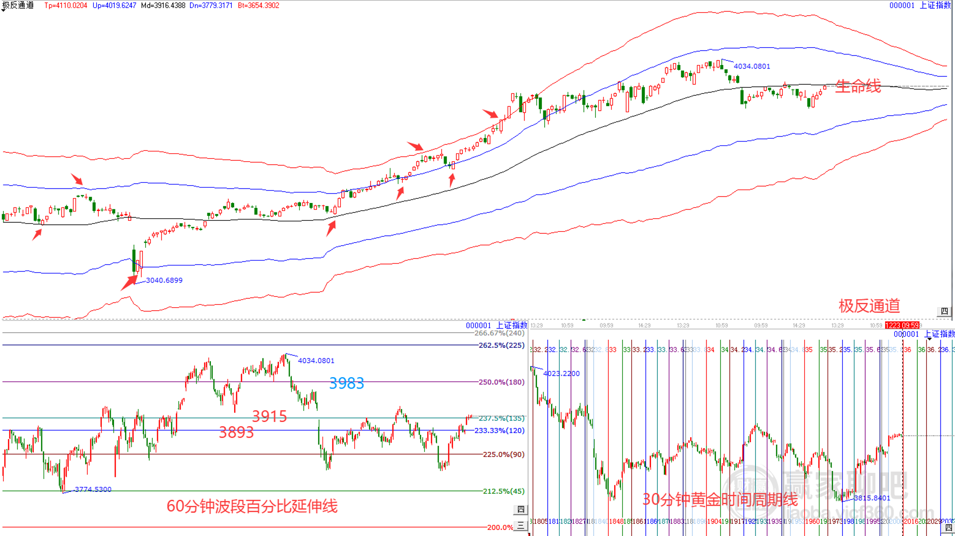 摘要: 贏家江恩三步分析法12月23日大盤解讀: 1、趨勢:指數(shù)自12月16日上漲至極反通道生命線下,按照贏家規(guī)則,生命線作為趨勢的強勢啟動點,生命線下整體視為看空?! ?、空間:支撐3915點、3893點,壓力3983點?! ?、時間:日內
