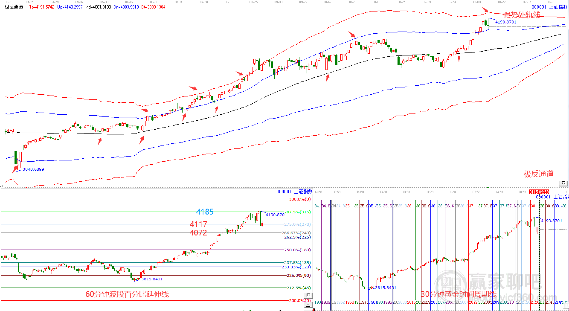摘要: 贏家江恩三步分析法1月15日大盤解讀: 1、趨勢:指數(shù)2026年1月9日突破強(qiáng)勢通道線進(jìn)入超強(qiáng)通道,該通道內(nèi)運(yùn)行波幅往往會加劇,依據(jù)規(guī)則站穩(wěn)一線看高一線,上方壓力關(guān)注強(qiáng)勢外軌線4234.97點(diǎn)。 2、空間:支撐4117點(diǎn),壓力407
