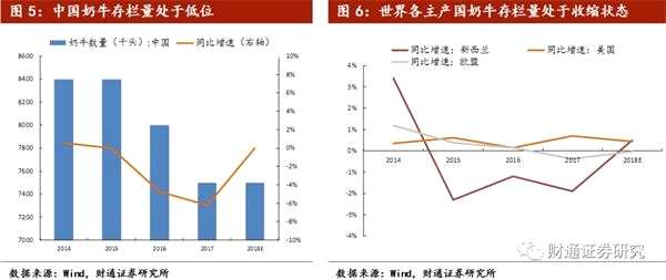 從奶牛存欄量來看,2018年國內(nèi)及國際奶量供給產(chǎn)能仍將收縮,奶價(jià)的溫和上漲階段對于乳制品企業(yè)的盈利貢獻(xiàn)最為明顯。另外,三四線城市人均鮮奶消費(fèi)量仍有較大的提升空間,消費(fèi)升級有望帶動需求溫和攀升。近期市場對于乳制品的擔(dān)憂或在于奶價(jià)漲勢暫緩,但我們認(rèn)為從奶牛存欄量來看,奶價(jià)尚不具備大幅下行的基礎(chǔ),主要供奶國奶牛存欄量仍呈現(xiàn)下行趨勢,且奶牛補(bǔ)欄到原奶價(jià)格變動存在滯后周期。我們預(yù)計(jì)從中期角度來看,奶價(jià)仍將呈現(xiàn)溫和上行趨勢。
