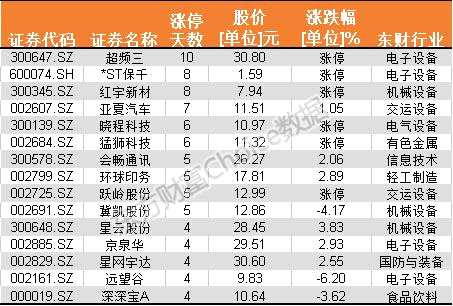 在這15只個股之中,今日股價表現(xiàn)漲跌不一。不過,除了上述提及的超頻三、紅宇新材之外,*ST保千(600074,股吧)、曉程科技、猛獅科技(002684,股吧)以及躍嶺股份(002725,股吧)今日也再度漲停。