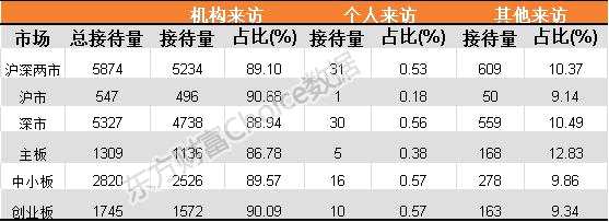 小編根據(jù)數(shù)據(jù)顯示,從整個(gè)十一月行情來看(11月1日至11月30日),各大板塊之中,滬市公司總接待量為547次,深市公司總接待量達(dá)5327次,滬深兩市接待總量為5874次。其中,主板、中小板、創(chuàng)業(yè)板分別接待量為1309次、2820次以及1745次。