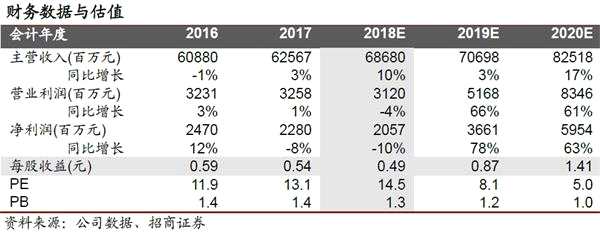 招商證券預計公司2018~2020年歸母凈利20.6/36.6/59.5億元。如果公司管理改善以及板塊協(xié)調帶動整體毛利率上行,公司盈利有望繼續(xù)提升。給予2019年11~12倍PE,給予“強烈推薦-A”投資評級。