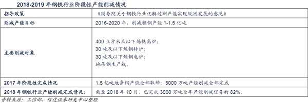 信達證券指出,當前鋼鐵行業(yè)供給側改革第一階段產能削減目標已基本完成。截至2018年10月,鋼鐵行業(yè)已累計完成產能削減約1.4億噸。至此,2016年《國務院關于鋼鐵行業(yè)化解過剩產能實現(xiàn)脫困發(fā)展的意見》中的產能削減目標基本完成。