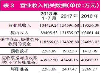 其實,除了采購及存貨數(shù)據(jù)存在異常之外,諾斯貝爾近年來的營收數(shù)據(jù)也有不合理之處。據(jù)其公布的2016年至2018年1~7月份的數(shù)據(jù),營業(yè)收入分別達(dá)到了119556.39萬元、154596.68萬元和104429.24萬元。其中,國內(nèi)營收分別為103861.44萬元、131539.07和89406.53萬元,考慮國內(nèi)營收部分需要考慮增值稅(17%稅率)因素的影響,則其含稅營收總額大約為137212.84萬元、176958.32萬元和119628.18萬元。