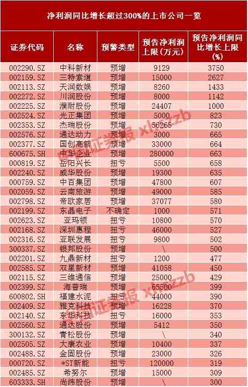 34家上市公司凈利潤增幅超300%