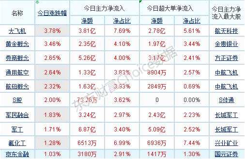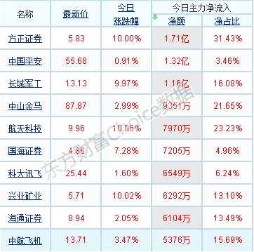 主力凈流入前十