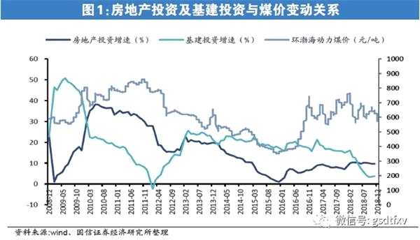 從長期來看,需求方面,煤炭終端需求主要來源于地產(chǎn)投資和基建投資,其中地產(chǎn)投資增速對煤炭需求增速影響更大(見圖1)。2018年受去杠桿影響,基建投資增速出現(xiàn)較大程度下滑,由2017年的19%下降至2018年前11月的3.7%,對煤炭需求造成一定拖累,而地產(chǎn)投資強(qiáng)勁是拉動(dòng)去年煤炭需求的主要原因。但從2018年下半年房地產(chǎn)數(shù)據(jù)來看,2018年前11月地產(chǎn)銷售同比增速由2017年的7.7%下降至1.4%,且仍有持續(xù)下降的趨勢,或?qū)?dǎo)致地產(chǎn)投資下滑。雖各大券商預(yù)計(jì)為穩(wěn)經(jīng)濟(jì)政府可能出臺放松地方的政策,但從銷售端傳導(dǎo)到投資會有一定的滯后,因此未來地產(chǎn)投資增速下滑概率較為明確,而基建投資得益于中央經(jīng)濟(jì)會議提出基建補(bǔ)短板政策,未來將有望企穩(wěn)回升。