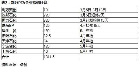 卓創(chuàng)資訊分析師王姍表示,據(jù)卓創(chuàng)資訊監(jiān)測,二季度PTA設(shè)備檢修較為集中,加之二季度下游長絲將迎來旺季,隨著PTA去庫存和長絲補庫,預(yù)計PTA價格將上行。