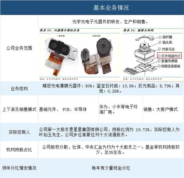 公司成立于 2002 年 8月,2008 年在深圳交易所上市。公司專業(yè)從事光學(xué)影像、LED、微顯示、反光材料等領(lǐng)域相關(guān)產(chǎn)品的研發(fā)、生產(chǎn)和銷售。目前,公司主營業(yè)務(wù)可以分為四類:光學(xué)、藍(lán)寶石、反光材料以及包括新型顯示的其他業(yè)務(wù)等。