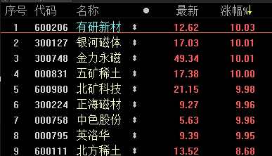 中信維持行業(yè)“強(qiáng)于大市”評級(jí),建議關(guān)注稀土永磁板塊:北方稀土、盛和資源、寧波韻升、中科三環(huán)、正海磁材、金力永磁。