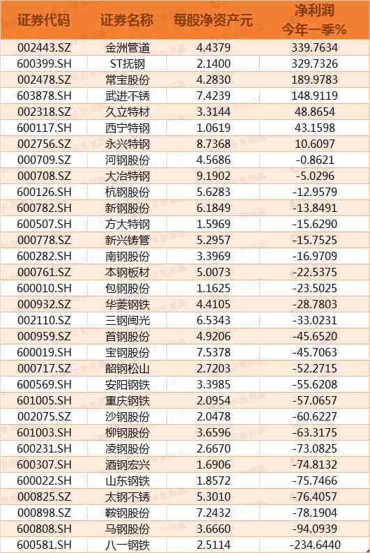 上圖是市場中鋼鐵企業(yè)的一季度業(yè)績增長情況,32家鋼企,一季度凈利潤增長的只有7家,凈利潤下降的達到25家,并且有12家鋼企的凈利潤增長率為-50%以上。