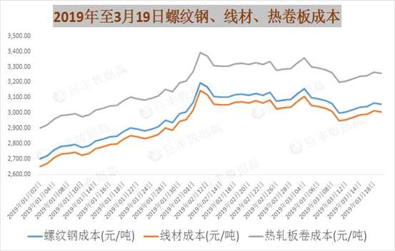 廢鋼、焦炭、鐵礦石這三種商品,應(yīng)該是冶煉新鋼的主要材料,上圖可以發(fā)現(xiàn),在今年初至3月19日,廢鋼和焦炭的價格保持相對穩(wěn)定,而鐵礦石價格從1月底開始,出現(xiàn)緩慢上漲,在2月中旬達到峰值。