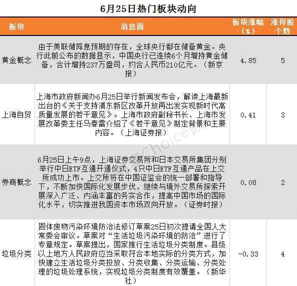 與此同時,兩市包括新股在內(nèi),共有807只個股迎來上漲,其中上漲7%以上個股占比1.56%。目前滬深兩市陷入震蕩調(diào)整格局,賺錢效應(yīng)有所回落。廣州萬隆表示,當前行情強勢上漲的概率并不大。不過在指數(shù)大跌風險有限的情況下,從交易的層面上來看,行情的結(jié)構(gòu)性機會應(yīng)該是明確的。建議繼續(xù)關(guān)注中線可以繼續(xù)持有的證券、國資馳援等方向的逢低吸納的機會。今日兩市共有59只個股漲停,多數(shù)集中于黃金概念、垃圾分類、券商概念、上海自貿(mào)區(qū)概念等板塊。