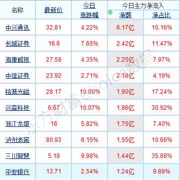 主力凈流入前十(點擊圖片查看詳情)