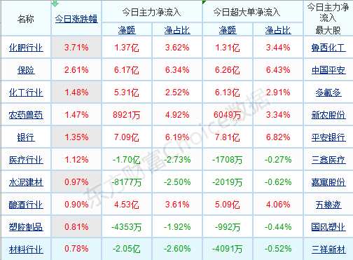 從盤面上來(lái)看,行業(yè)與概念板塊漲跌不一。在行業(yè)板塊之中,化肥行業(yè)、保險(xiǎn)、化工行業(yè)、銀行等板塊漲幅居前;而在概念板塊之中,氟化工、生態(tài)農(nóng)業(yè)、OLED等板塊漲幅靠前。