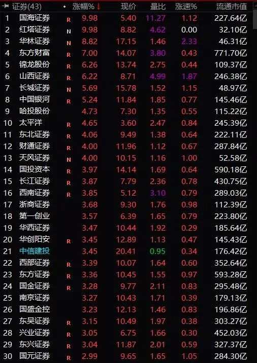 今天上午券商股又見一波特立獨(dú)行的走勢(shì),以3.87%的板塊漲幅位列第一位。券商股因何集體暴動(dòng)?