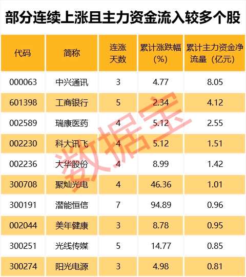 連漲且主力資金大幅流入股揭秘