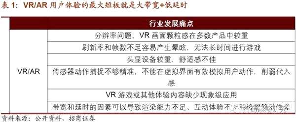 對(duì)于消費(fèi)者而言,在實(shí)際體驗(yàn)時(shí),暈眩感、分辨率低、體積大、價(jià)格貴等缺點(diǎn)使得ARVR產(chǎn)品吸引力下降。其中VR/AR產(chǎn)品因?yàn)閹捄脱訒r(shí)的因素導(dǎo)致渲染能力不足、互動(dòng)體驗(yàn)不強(qiáng)和終端移動(dòng)性差等痛點(diǎn)問題,一直是遏制行業(yè)發(fā)展的最大短板,阻礙了其在消費(fèi)領(lǐng)域的大規(guī)模放量。除此之外,在顯示領(lǐng)域同樣面臨著這樣的問題,硬件平臺(tái)的分散與發(fā)展程度不同造成標(biāo)準(zhǔn)不統(tǒng)一,各個(gè)設(shè)備的分辨率和刷新率與延遲都不同。當(dāng)時(shí)VR設(shè)備屏幕分辨率多是2K,理論上需4K以上分辨率屏幕才足夠清晰。屏幕刷新幀速,理論上需達(dá)到最低120HZ,很多設(shè)備也達(dá)不到。