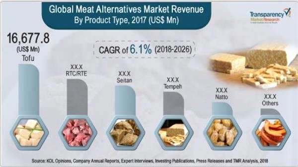 透明市場研究(TMR)本周發(fā)布的一份報告顯示,預計全球肉類替代品市場未來幾年將出現(xiàn)強勁增長,2018年-2026年期間的復合年增長率將達到6.1%。
