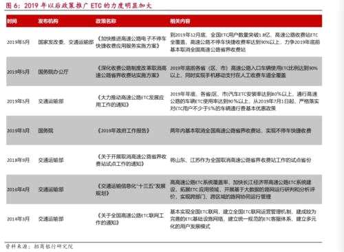 中國【工商銀行(601398)、股吧】(行情601398,診股)投資銀行部指出,和以往相比,此次《方案》的規(guī)劃有兩個特點:一是加速推進(jìn)ETC發(fā)展的目標(biāo)非常明確,對未來兩年ETC普及率提出了具體的要求;二是范圍更加廣泛,不局限在高速公路,而是擴(kuò)展到多個場景的停車場。