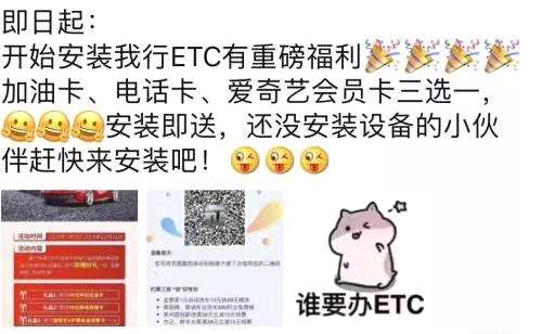 “我們銀行辦ETC有優(yōu)惠哦,加油卡、充值卡、還有愛奇藝會員三選一!”