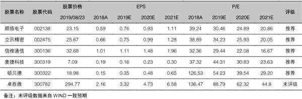 投資建議:5G時(shí)代射頻前端變革最大,受益首當(dāng)其沖。從全球范圍來看,我們認(rèn)為4G時(shí)代的四巨頭Skyworks、Qorvo、Murata和Broadcom最先受益,有望繼續(xù)保持領(lǐng)跑。同時(shí)重點(diǎn)關(guān)注切入射頻前端的基帶芯片廠商:高通、海思(未上市)、MTK、紫光展銳(未上市)。國內(nèi)來看,推薦信維通信、【碩貝德(300322)、股吧】、立訊精密、順絡(luò)電子、麥捷科技;建議關(guān)注射頻開關(guān)龍頭卓勝微。