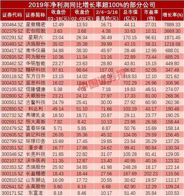 宏創(chuàng)控股、星期六、沃施股份凈利潤同比增長率也較為驚人,分別為3,669.30%、1,871.45%、1,218.58%;另有包括南華儀器、【同為股份(002835)、股吧】、華銘智能和精研科技等在內(nèi)的23家公司,凈利潤同比實(shí)現(xiàn)翻番。