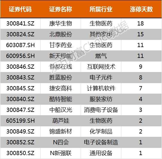 7月13日新股漲停統(tǒng)計(jì)
