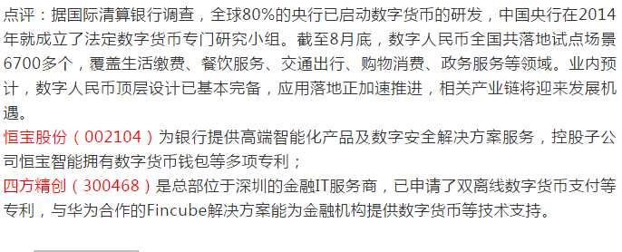 業(yè)內(nèi)預(yù)計,數(shù)字人民幣頂層設(shè)計已基本完備,應(yīng)用落地正加速推進,相關(guān)產(chǎn)業(yè)鏈將迎來發(fā)展機遇。