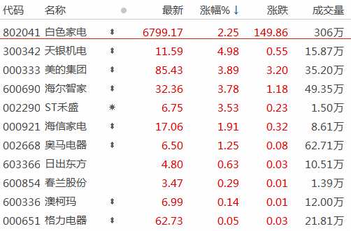 渤海證券認(rèn)為,從終端銷售數(shù)據(jù)來看,雖然近期家電產(chǎn)品受上游原材料上漲的影響,價格有所提升,但今年1-2月家電市場銷量依舊向好。最近三大白電龍頭企業(yè)也紛紛回購股份,彰顯了信心。特別今年兩會政府工作報告中再提穩(wěn)定增加家電等大宗消費,進一步提振了行業(yè)信心。近期,進入了業(yè)績密集公布期,建議關(guān)注業(yè)績超預(yù)期的個股和在產(chǎn)業(yè)鏈中議價能力較強的各細(xì)分行業(yè)龍頭。
