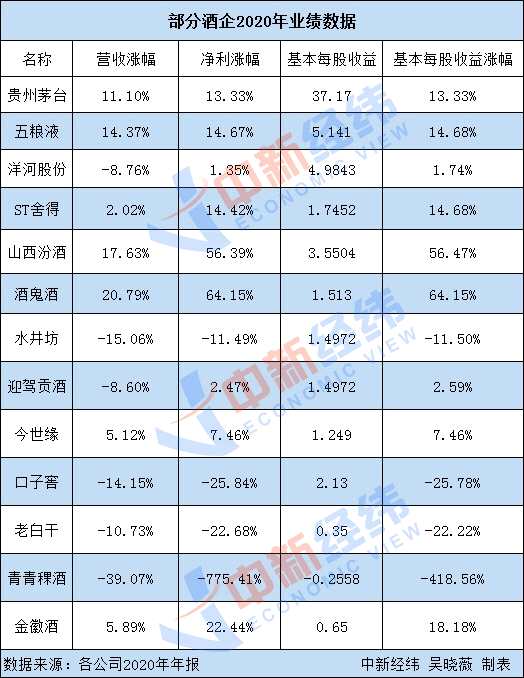 目前,已有部分上市酒企披露了2020年年報,梳理發(fā)現(xiàn),貴州茅臺基本每股收益37.17元,位列眾酒企之首。五糧液、洋河股份分別以5.141元、4.9843元的收益位列二、三。