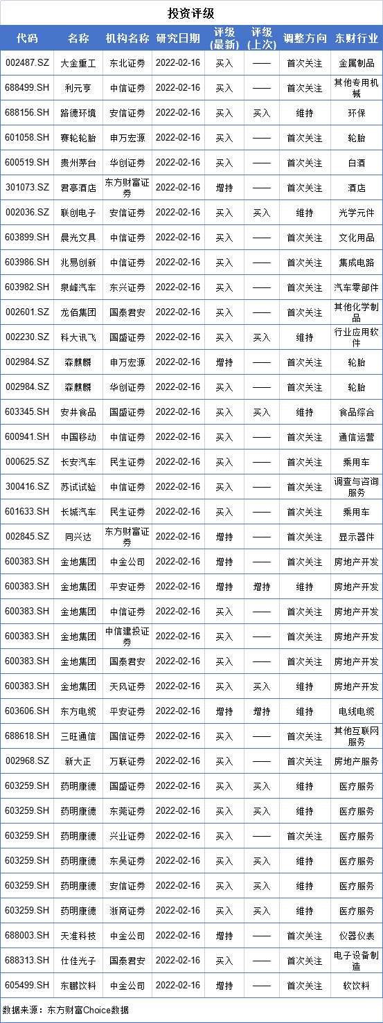 摘要: 數(shù)據(jù)挖掘機,縱覽A股市場,上市公司實時追蹤!個股評級、增減持、停復牌、限售解禁、新股資訊等盡在掌握?!緜€股投資評級】【解禁詳情一覽】【兩市停復牌一覽】【新股日歷】(文章來源:東方財富研究中心)
